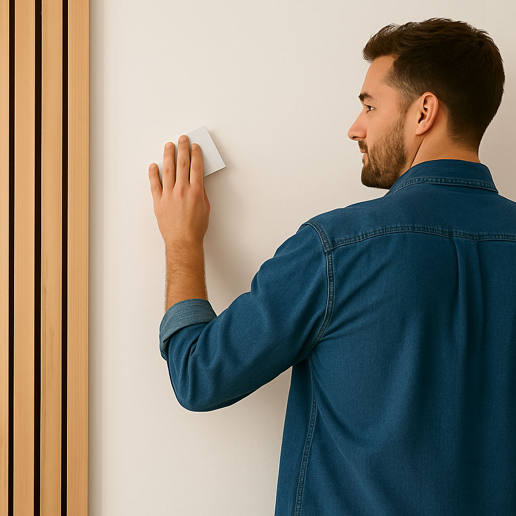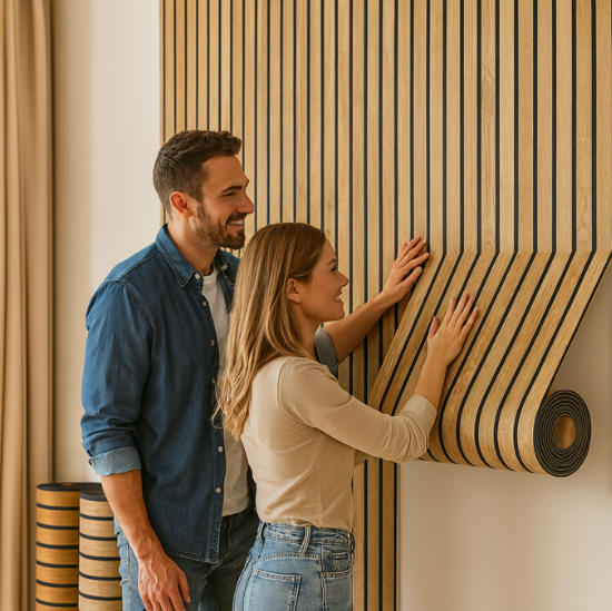 Acoustic panel with realistic wood texture, self-adhesive.No paper material – made from durable, textured composite. (300 cm x 40 cm)